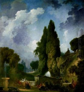 A park landscape with elegant figures promenading