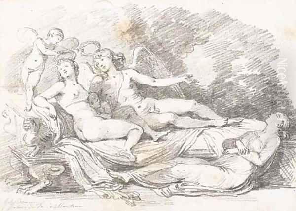 Cupid and Psyche, after Giulio Romano Oil Painting - Jean-Honore Fragonard