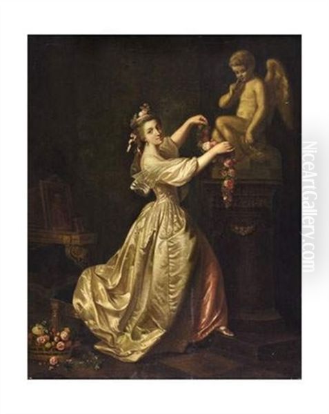 Femme Parant L'amour De Guirlandes Oil Painting by Jean-Honore Fragonard