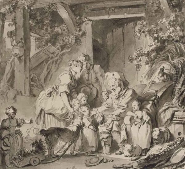 La Visite Au Grand-pere With Inscription 'fragonard'