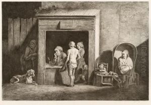 A Man Playing The Shawm Before Two Shepherd Boys, With A Lamb On His Lap