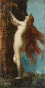 Rothaariger Frauenakt Sein Spiegelbild Im Wasser Betrachtend