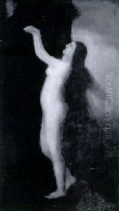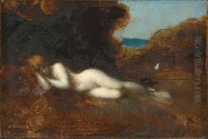 Nachtliche Landschaft Mit Liegendem Ruckenakt
