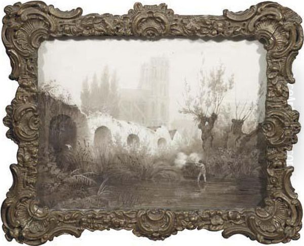 A Sportsman By A Ruined Bridge, A Cathedral Beyond