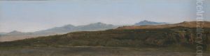 A Landscape With Figures Herding Their Sheep Along The Path With Mount Vesuvius Erupting In The Background