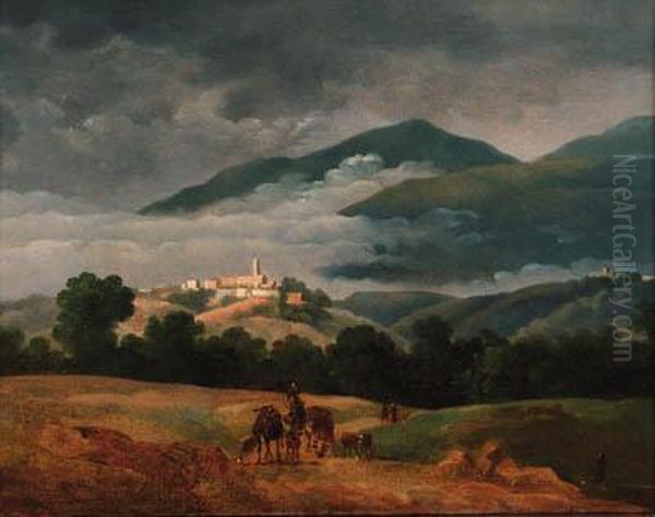 A Neatherd And His Cattle In A Mountainous Landscape