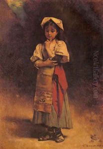 Meditation Oil Painting by Jean Jules Frere