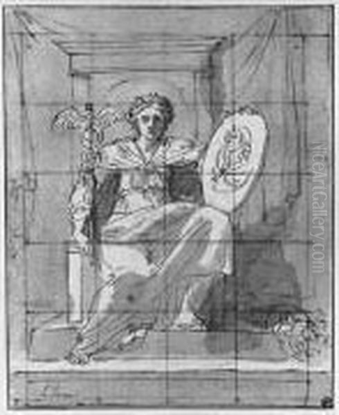 Brune, Lavis Brun ; Mis Au Carreau Au Crayon Noir