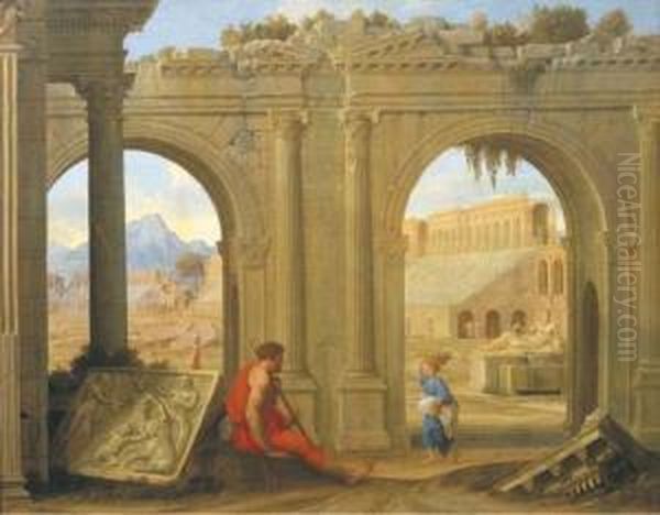 Figures Amongst Classical Architectural Ruins