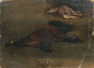 Deux Chevaux Etendus Sur Le Sol