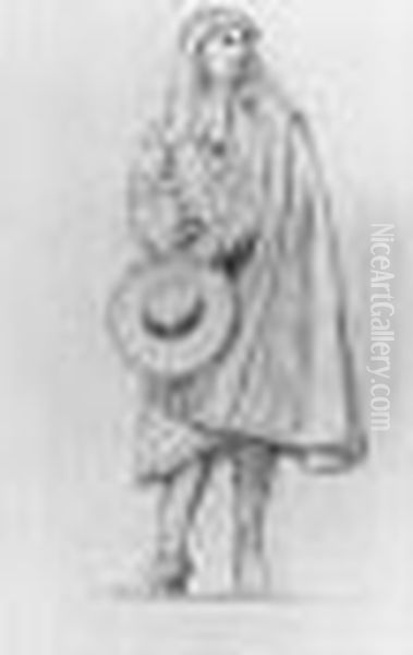 Courtisan Debout, Son Chapeau A La Main, Le Bras Droit Drape Dans Sa Cape - Avant 1878.