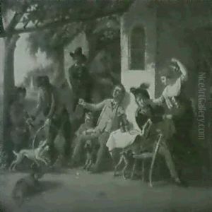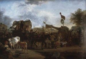 A Farmer With A Laden Donkey On A Track, A Cottage Beyond