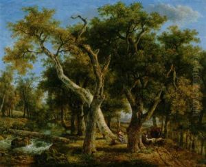 A Wooded Landscape With Washerwomen And Cattle Watering By A Mill