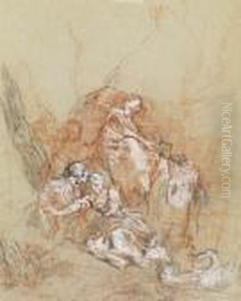 Scene Galante Au Cygne Et A La Cage Doiseau
