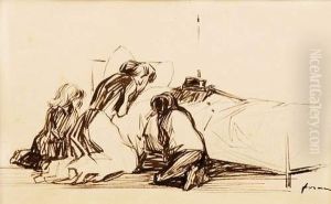 Studies Of Women And A Vignette Of A Man Riding A Horse