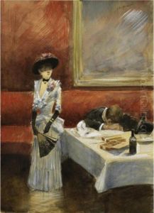 Un Homme Assis Regardant Une Femme Faisant Sa Toilette
