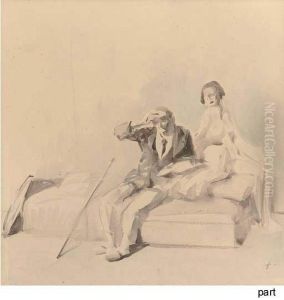 A Mustachioed Gentleman, Half-length, Wearing A Top Hat, And A Subsidiary Study Of The Same Figure