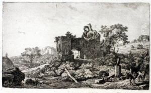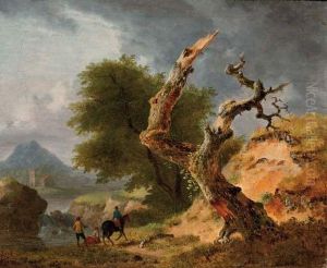 An Extensive Italianate Landscape With A Caravan Of Drovers Watering Their Animals