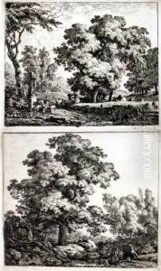 Travelling Peasants With Their Cattle And Sheep In A Landscape; Andfigures With Animals Outside An Inn Beside A Wheat Field