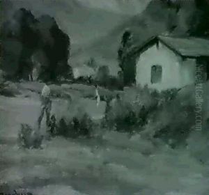 Cabin And Figures In Eucalyptus Landscape