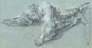 A Seated Man Holding A Compass With Subsidiary Studies Of His Handsand Legs