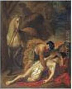 Portrait Of Jean-baptiste Le Gobien, Seigneur De Saint-jouan, Holding A Gun, Seated, With Two Dogs