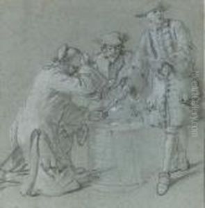 Portrait Of A Man, Believed To Be Jean-baptiste Gresset, Half-length, Holding A Wine Bottle And Glass