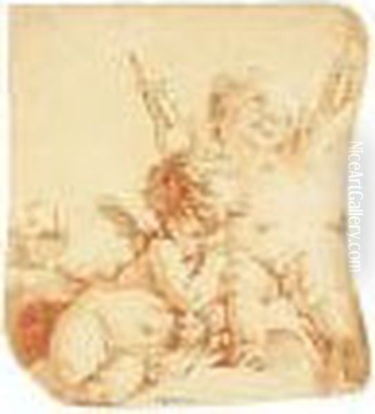 Portrait Of A Man, Believed To Be Jean-baptiste Gresset, Half-length, Holding A Wine Bottle And Glass