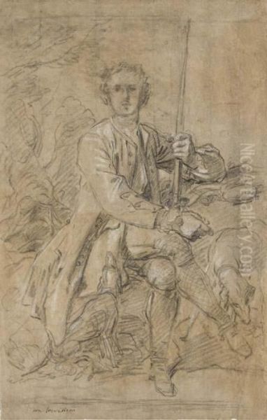Portrait Of Jean-baptiste Le Gobien, Seigneur De Saint-jouan, Holding A Gun, Seated, With Two Dogs