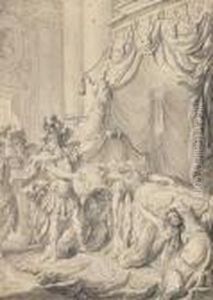 Study Of A Classical Figure Of A Serving Boy Carrying A Wine Jar And A Cup
