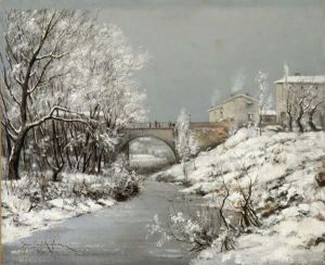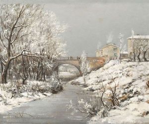 Winterliche Landschaft Mit Brucke