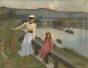 Mother And Daughter On The Riverbank