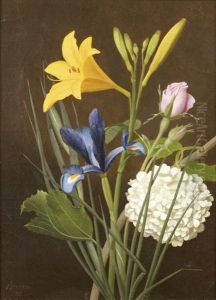 A Lady, In Grey Silk Dress With Lace Shawl Over Her Shoulders, Wearing A Sapphire-set Pearl Necklace And Silver Silk Hat Adorned With White Plumes And Lace