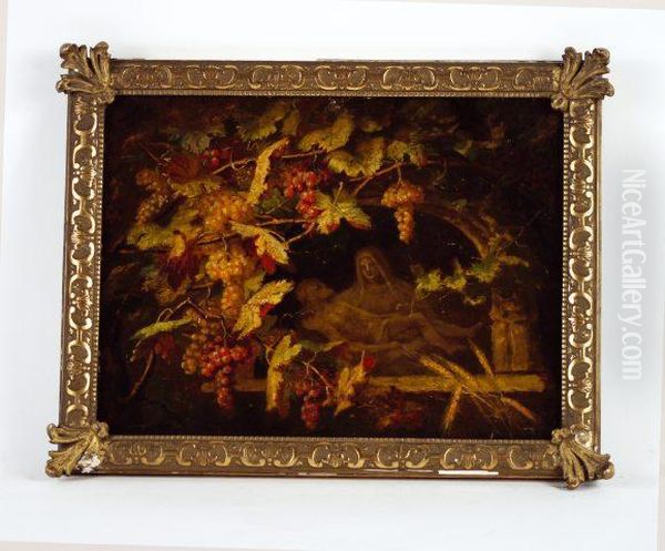 La Pieta Eucharistique.huile Sur Carton Signee Et Datee Au Dos, Comporte Egalementune Mention Manuscrite Concernant Le Choix Du Titre. 23,5x32 Cm.bg