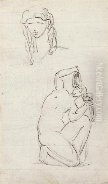 Study Sheet With Kneeling Female Nude And Study Of Head
