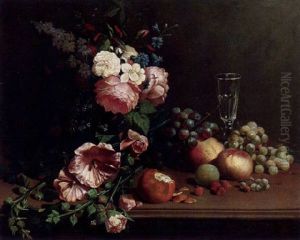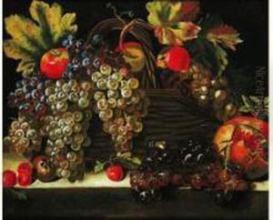 Nature Morte A La Corbeille De Fruits Sur Un Entablement