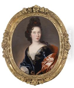 Portrait Of A Lady, Bust-length, In A Blue Silk Dress Trimmed With Lace And Embroidered With Gold Thread