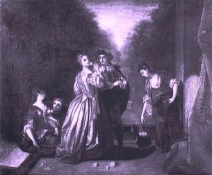 Conversazione Galante Tra Due Coppie, A Sinistra, Giocatori, Nel Fondo, Sonatori
