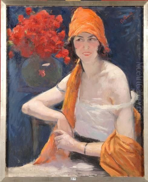 Portrait D""une Elegante Aux Fleurs