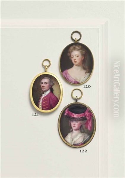 A Young Lady, In White Dress With Frilled Collar, Black Velvet Choker, Wearing A Large Black Hat With Spotted Pink Ribbon On Her Powdered Hair