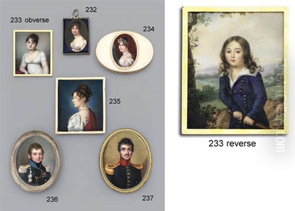 A Young Lady With Her Right Elbow Leaning On A Red Stole, In Lace-bordered White Dress, Her Dark Hair Curling, Upswept (+ A Young Boy Drawing His Sword, By Jacques Delaplace, Ca. 1810, On Paper, Verso