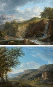 A Landscape With Two Horsemen Riding Through A Valley; A Landscape With A Shepherd And His Flock In Front Of A Walled Town (pair)