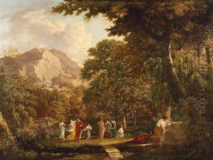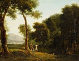 A Classical Landscape With Figures Conversing Beneath A Tree