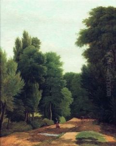 Vue D'une Allee Boisee Avec Une Paysanne