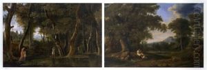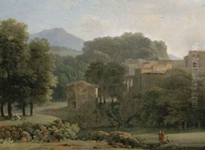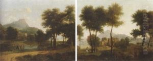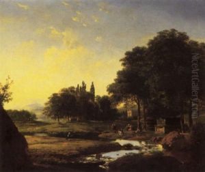 An Italianate Landscape With Women Collecting Water, A Shepherd And His Flock Beyond (+ An Italianate Landscape With Herdsmen Watering At A Stream, With A Town Beyond, 1828; Pair)
