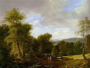 Wooded Landscape With A Woman Nearing A Stream