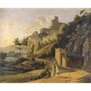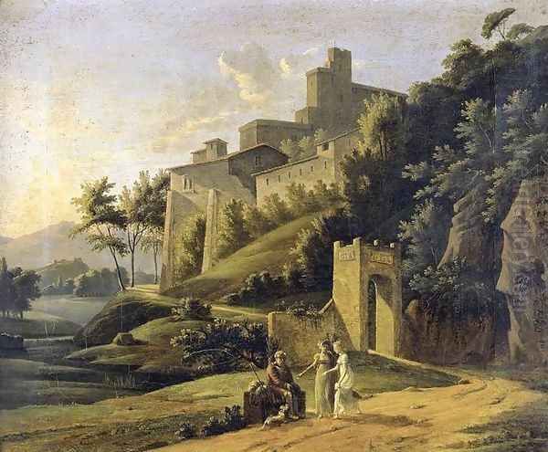 Landscape with a Fortress and a Beggar Oil Painting - Jean-Victor Bertin