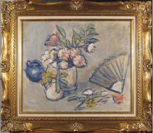 "nature Morte Aux Bouquets De Fleurs Et A L Eventail"