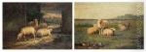 Scene Pastorale Animee D'une Bergere Aux Moutons (pair)