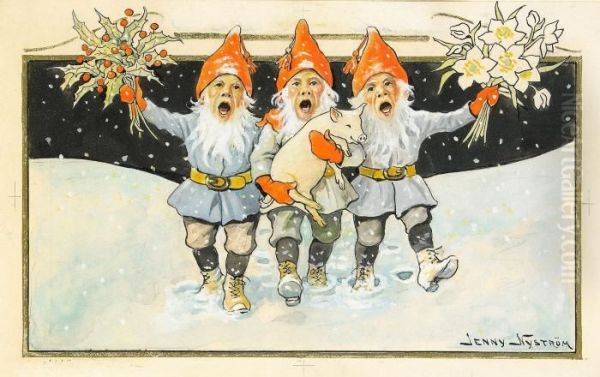 Bring the timeless beauty of Jenny Nystrom's Tre Sjungande Tomtenissar into your home with a handmade oil painting reproduction. Carefully recreated on canvas by skilled artists using traditional techniques, this piece captures the delicate brushwork, subtle light, and vibrant color of the original masterpiece. With museum-level quality and rich texture, it brings elegance and artistic depth to any space. Enjoy free shipping and make this masterpiece a part of your personal collection.
